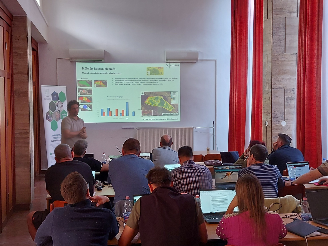 Tarcsi Ádám, a Data-EDIH szakmai vezetője, az ELTE Informatikai Kar oktatója a hozamadatok kezeléséről, tisztításáról és felhasználásáról beszélt, több esettanulmányt is bemutatva. Kitért a bevétel számítás, valamint költség-haszon elemzés dilemmáira, hogy mikor éri meg a precíziós szemlélet alkalmazása, valamint arra is, hogy csak a pontos mérések alapján lehet és csak így érdemes pénzügyi döntéseket hozni. Fontos, hogy a gazdasági számításoknál nem a hozam, hanem a profit a lényeg, ezt érdemes lenne minél több hazai gazdálkodónak a tervezésbe illesztenie.