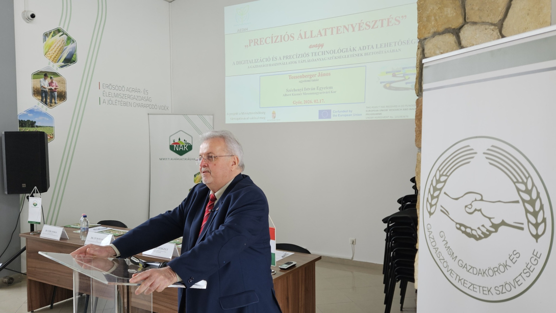 A második előadó szakember Tossenberger János professzor volt, aki a digitalizáció és a precíziós technológiák adta lehetőségekről, valamint a takarmányozás megoldásairól, gyakorlatáról és hatékonyságnöveléséről is beszélt Győrben, a NAK Győr-Moson-Sopron Vármegyei Igazgatóságán, a Bálint Mihály utcában.